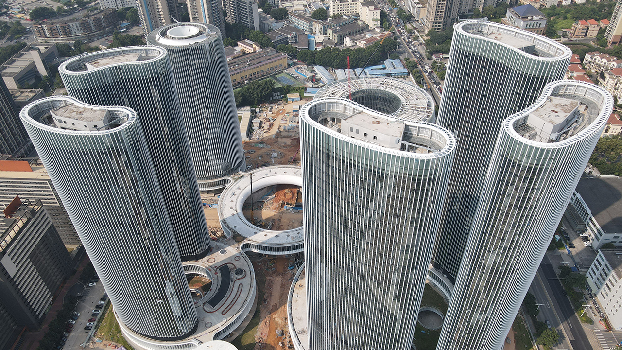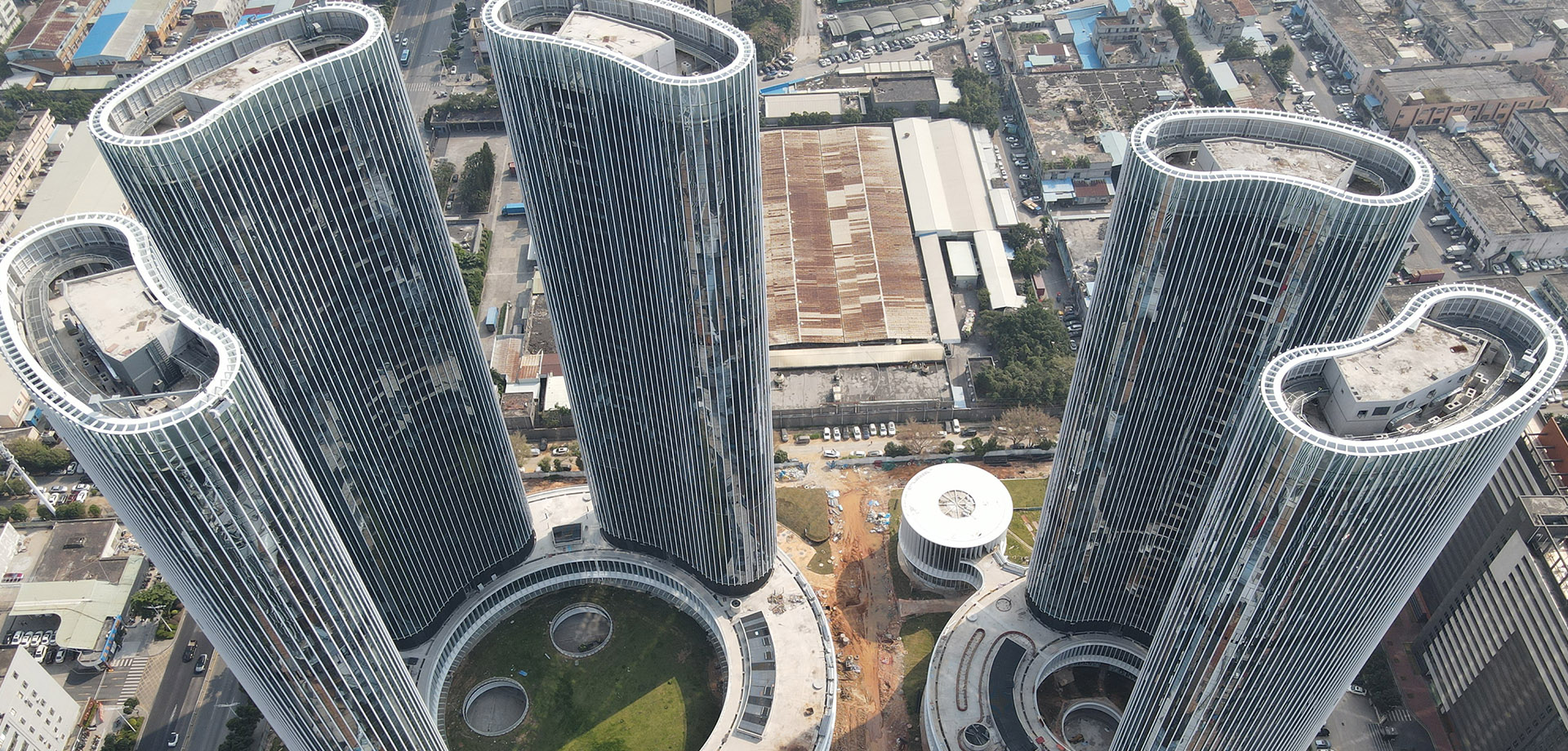 幕墻面積:約11.3萬m2 項目設(shè)計:美國KPF建筑事務(wù)所 幕墻類型:框架式玻璃幕墻、弧形鋁板幕墻系統(tǒng)、鋁合金格柵系統(tǒng)等