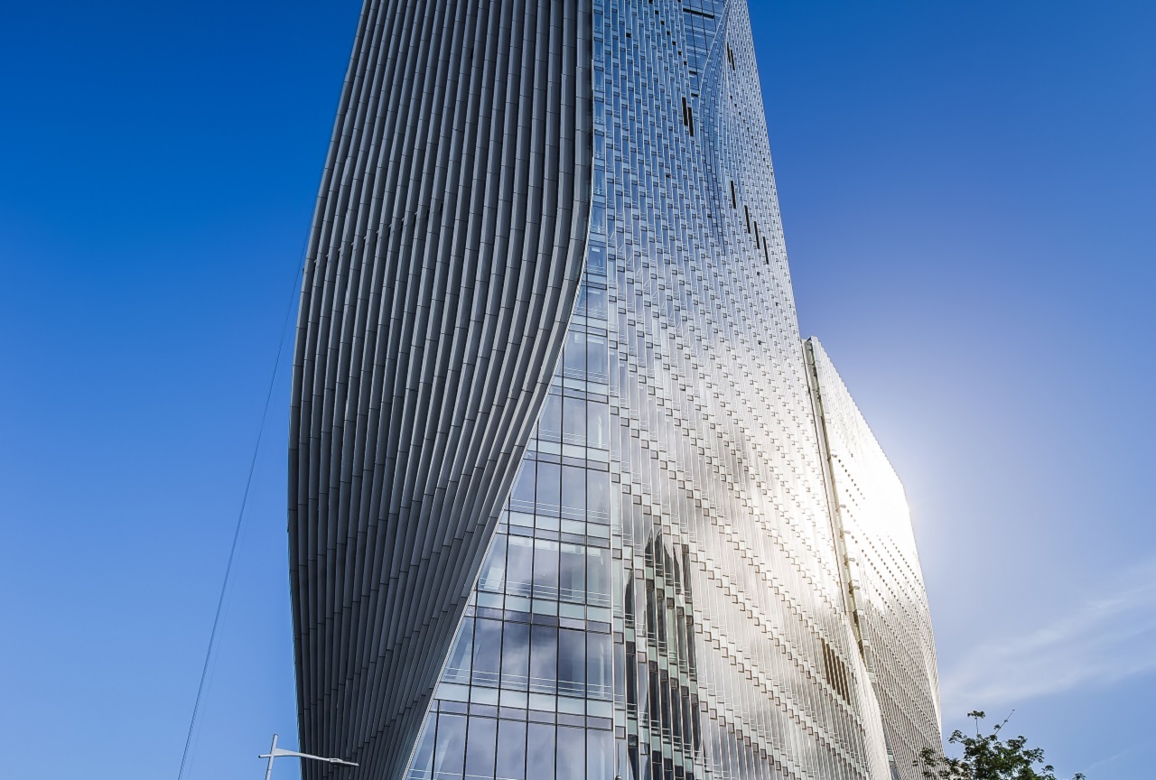 建筑高度:北塔樓218米,南塔樓116米 幕墻面積:80000㎡ 項目設計:丹麥BIG建筑事物所 幕墻類型:單元式鋸齒玻璃幕墻,單元式鋸齒波紋鋁板幕墻