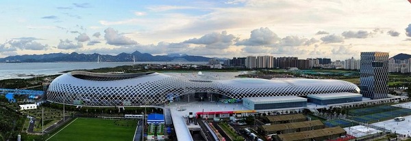 深圳灣體育中心“春繭”坐落于深圳市南山后海中心區(qū),是第26屆世界大學(xué)生夏季運(yùn)動(dòng)會(huì)分會(huì)場(chǎng)之一和開(kāi)幕式場(chǎng)地,總建筑面積約32.2萬(wàn)平方米,其體育場(chǎng)、體育館、游泳館被置于一個(gè)白色巨型網(wǎng)格狀鋼結(jié)構(gòu)屋面下,線條柔美的大屋頂猶如孕育破繭而出沖向世界的運(yùn)動(dòng)健兒的孵化器,表現(xiàn)出新的活力。