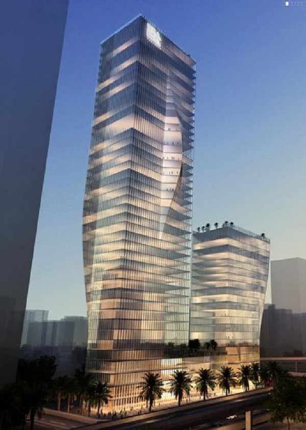 深圳國際能源大廈位于深圳市福田中心區(qū)濱河大道與金田路交匯處東北角,總建筑面積為14.3萬平方米,北塔樓218米、南塔樓116米,幕墻面積約8萬平方米,中標(biāo)金額2.49億元人民幣。本項目由丹麥BIG建筑事務(wù)所設(shè)計,立面造型新穎,主要采用單元式幕墻、波紋鋁板等系統(tǒng)。