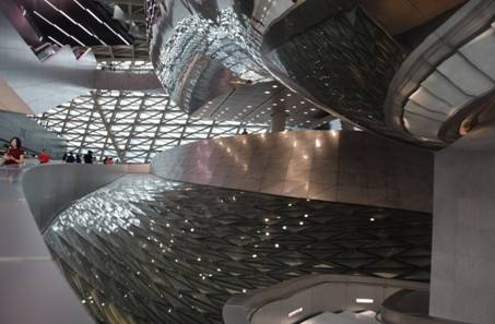 “兩館”作為市民了解城市發(fā)展進(jìn)程與領(lǐng)略當(dāng)代藝術(shù)現(xiàn)狀的展館,完全建成之后每年將吸引龐大的游客量。如何塑造一個(gè)舒適的游覽空間是擺在建筑設(shè)計(jì)者和建造者面前的一個(gè)難題。“兩館”采用大量傾斜、扭曲和旋轉(zhuǎn)的曲面幕墻設(shè)計(jì),保證了最大的采光效果,方大幕墻系統(tǒng)以精細(xì)的產(chǎn)品設(shè)計(jì)和卓越的產(chǎn)品性能,很好的滿足了設(shè)計(jì)師的要求,營造了一個(gè)適宜觀覽的、自然柔和的光影空間,體現(xiàn)了以人為本的產(chǎn)品理念。