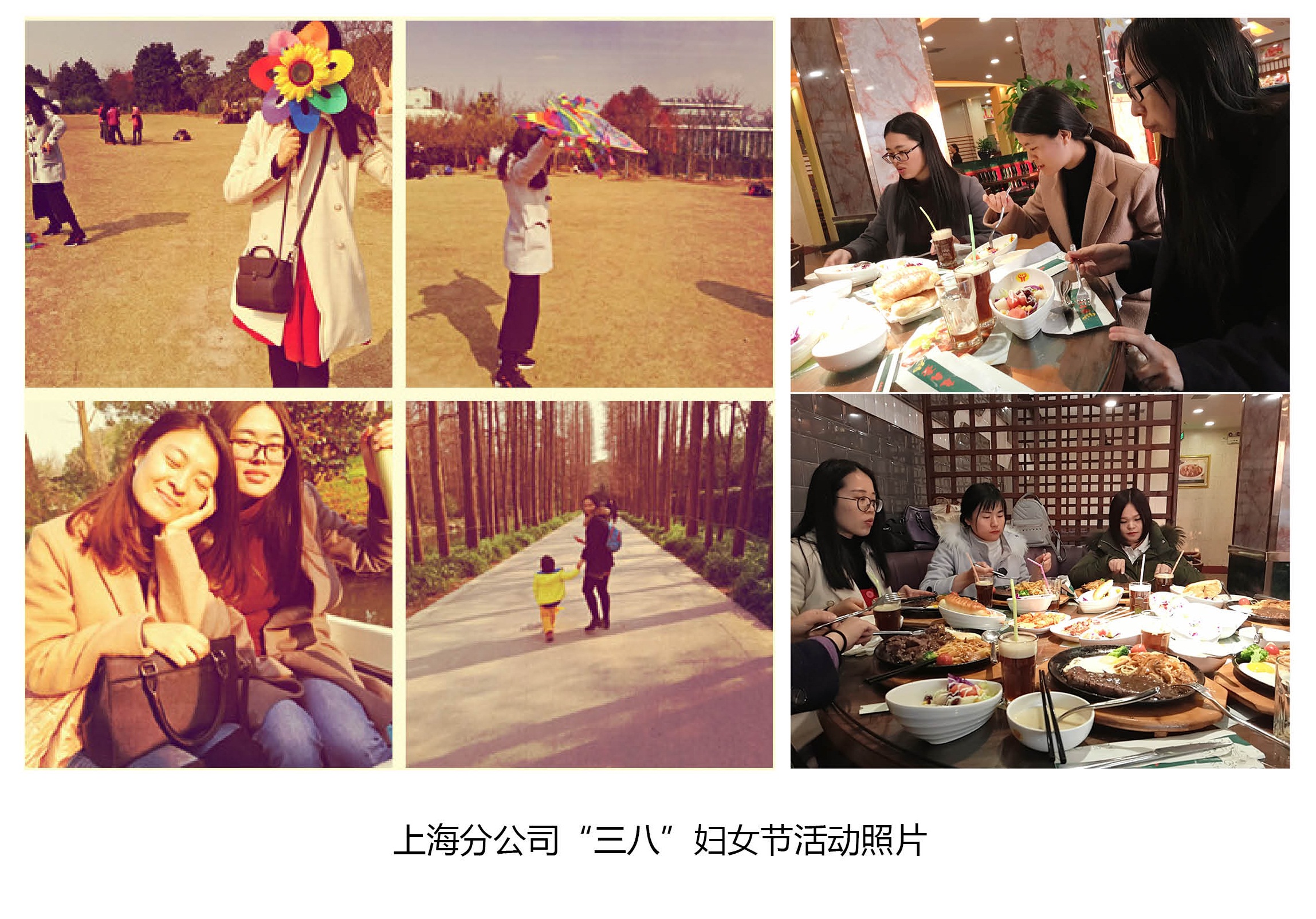 在北京,北京分公司的每位女員工們節日當天一大早就收到了公司精心準備的一束玫瑰花;中午下班后女員工們在餐桌上齊聚一堂,舉杯慶祝,祝愿彼此節日快樂,共度美好時光;下午,北京分公司的女員工一同前往朝陽公園踏青游玩,在藍天白云下,放風箏,吹泡泡,在游樂場體驗著驚險刺激的項目,玩的不亦樂乎。