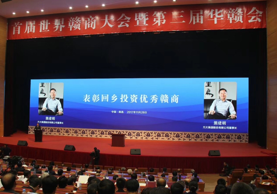 11月28日,首屆世界贛商大會暨第三屆華贛會在江西省南昌市隆重舉行,方大集團股份有限公司董事長熊建明榮獲“首屆江西省回鄉投資優秀贛商”稱號。全國人大常委會副委員長、民建中央主席陳昌智、國務院僑務辦主任裘援平、江西省委書記鹿心社、江西省長劉奇以及海內外知名贛商代表、社科界贛籍知名人士等約1500人共同出席了開幕式。