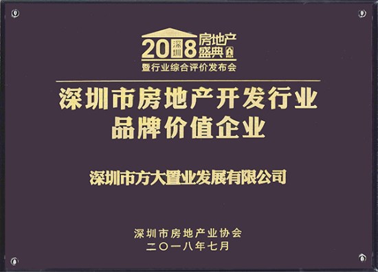 7月10日,第八屆深圳房地產盛典暨行業綜合評價發布會舉行,公布了2018綜合評價結果,方大置業公司獲評“深圳市房地產開發行業品牌價值企業”。