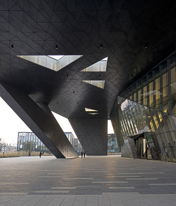 深圳市當代藝術館與城市規劃展覽館坐落于深圳中心區中軸線上,是中心區最后一個大型公共文化建筑,總建筑面積約8萬平方米。作為推廣新銳藝術、展示城市的新地標,該建筑以柔和的空間造型和藝術形象引起了廣泛的關注。該項目采用了大量的三角形玻璃幕墻及三角形穿孔不銹鋼+玻璃的雙層幕墻,實現了外立面傾斜、扭曲和旋轉的曲面變化,在確保最佳的采光效果同時,兼顧了遮陽、亮化等功能性需要,極富想象力和生命力,但也對幕墻平整度、施工精細度等帶來極大的挑戰。方大建科的工匠們,克服了幕墻形式復雜、材料品種規格多、施工精度高等種種困難,打造了這座兼具美感和功能性的“表皮”。