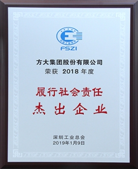 為倡導和激勵企業積極履行社會責任,樹立模范標桿,深圳工業總會組織了2018年度履行社會責任杰出企業、優秀企業評選,主要從守法經營、企業公眾形象、參與公益事業、履行社會責任、關注維護本企業利益相關者合法權益等方面進行評比,最終選出19家履行社會責任杰出企業,23家履行社會責任優秀企業。