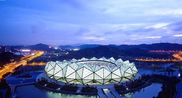2011年10月,舉世矚目的第26屆世界大學生夏季運動會在深圳成功舉辦。深圳大運中心主體育館工程的外圍護結構工程造型復雜,應用了多種新型節能材料,防水性能要求高,設計及施工難度堪比北京奧運會的鳥巢。別致新穎的設計讓所有人眼前一亮,但想讓它在緊張的工期內完工并達到預期效果,卻并非是一件容易的事。業主方聯系了多家國外幕墻公司,但對方均未接手。在省、市政府有關領導的帶領下,業主方找到了方大,通過多方研究,組委會最終決定把深圳大運中心和深圳灣體育中心兩個項目交給方大,當時這兩個項目在全世界都是難度非常高的。