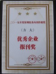 近日,2019年度深圳內刊界“深圳優秀內刊傳媒獎”評選結果出爐,方大集團企業刊物《方大》被評為“優秀企業報刊獎”。