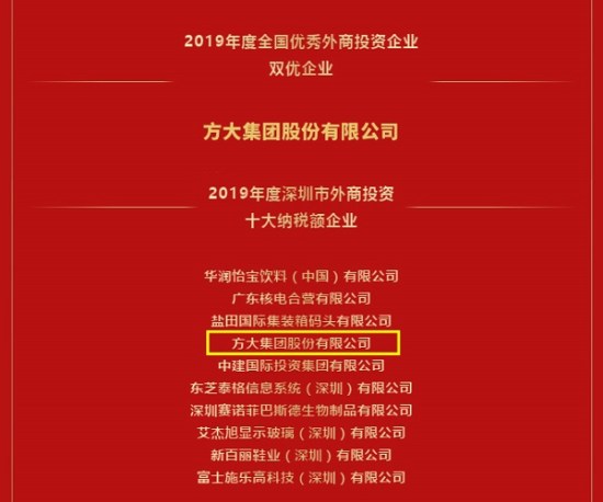 1月8日,全國優(yōu)秀外商投資企業(yè)年度評選深圳榜單揭曉,方大集團榮獲2019年度全國優(yōu)秀外商投資企業(yè)——雙優(yōu)企業(yè)和2019年度全國優(yōu)秀外商投資企業(yè)深圳市十大納稅額企業(yè)。