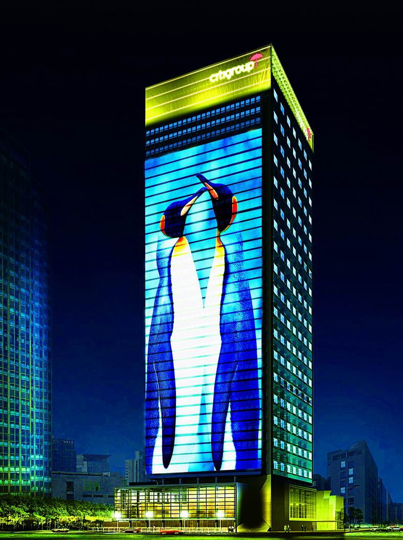 方大承建的全球最大LED全彩顯示屏----上?;ㄆ煦y行大廈LED彩顯幕墻